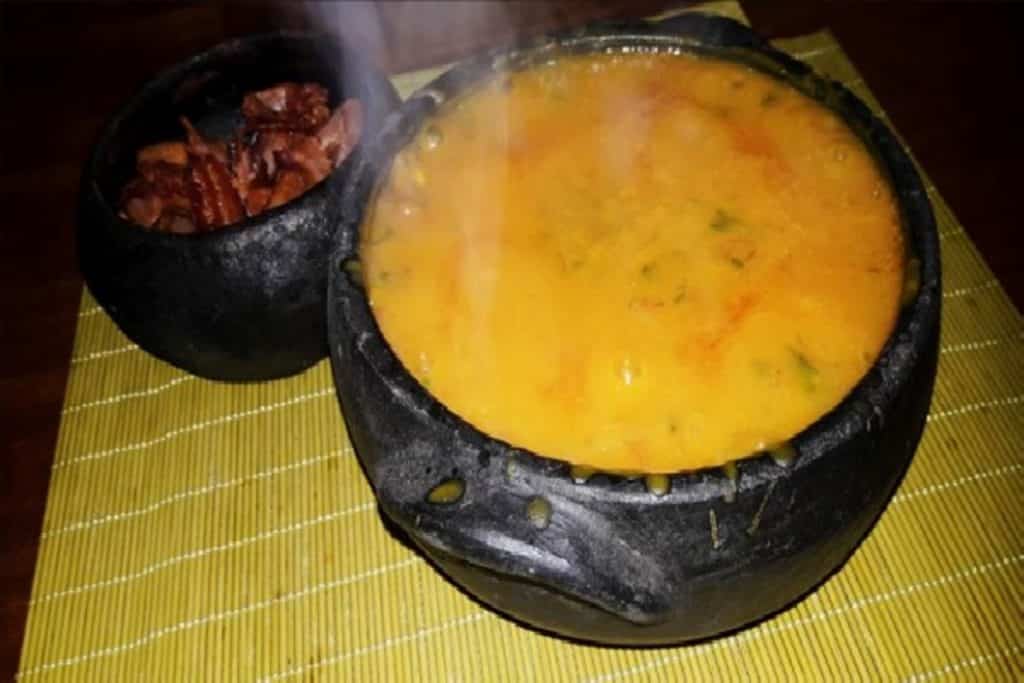 Caldo de mandioca com linguiça um caldo quente encorpado e gostoso