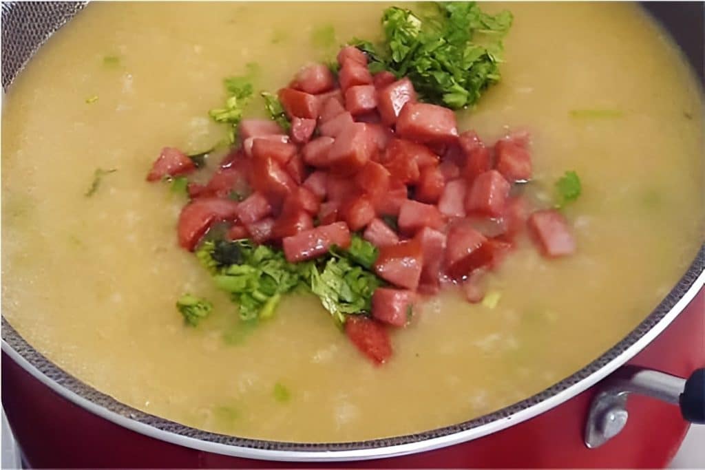 Caldo de mandioca com linguiça um caldo quente encorpado e gostoso