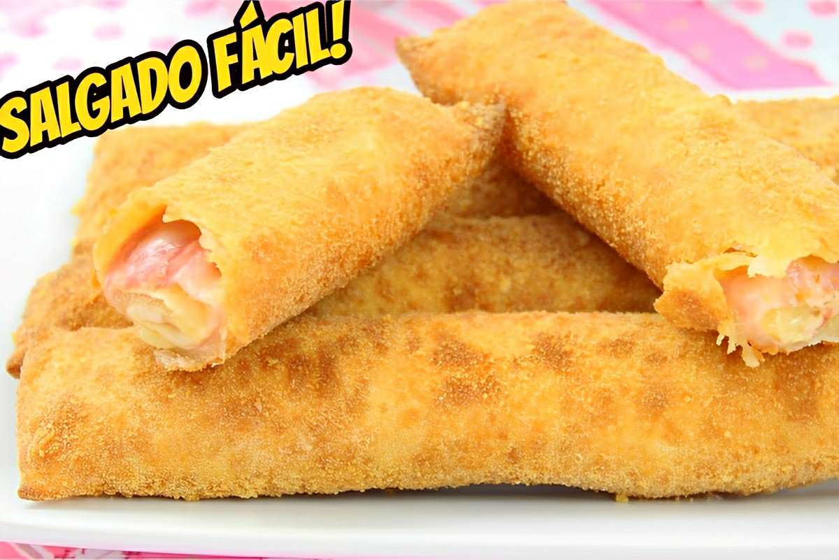 Para fazer salgado de preguiçoso vamos utilizar farinha de rosca, leite, queijo parmesão ralado, ovo, massa de pastel em rolo, mussarela, presunto, sal e óleo. Primeiramente iremos misturar o leite com o sal, a farinha de rosca com o queijo ralado e reservar. Na sequência do preparo do salgado de preguiçoso, vamos abrir a massa de pastel numa bancada, dispor uma fatia de mussarela, uma de presunto, e mais uma de mussarela, cortar um retângulo, deixando 2 cm de borda, e enrolar como rocambole modelando o salgado de preguiçoso. Passar no leite, empanar na farinha de rosca + queijo ralado, fritar em óleo quente, retirar o excesso de óleo em papel absorvente e dispor numa travessa. Sirva em seguida essa maravilha de salgado de preguiçoso!